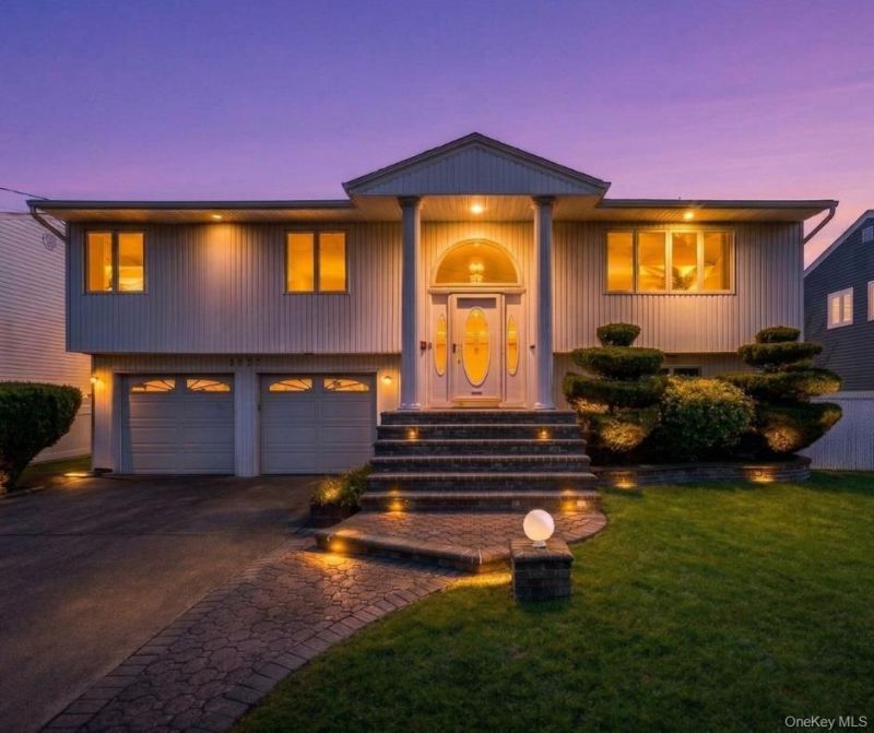Waterfront high ranch offering 4 bedrooms and 2 full baths, set on a desirable water-facing property with endless potential. This home features a spacious and functional layout with hardwood floors throughout and full central air, providing year-round comfort. The kitchen is equipped with a premium Viking stove and flows into the dining area, making it ideal for everyday living and entertaining. Generous living space throughout offers flexibility for a variety of needs. Additional highlights include a gas line for BBQ, a 2-car garage with its own heating zone, and a whole-house generator for added convenience and peace of mind. Enjoy true waterfront living with direct access, complete with a boat lift and floating dock-perfect for boating, relaxing, and taking in the views. A wonderful opportunity to add your personal touch while enjoying all the benefits of this sought-after waterfront setting.